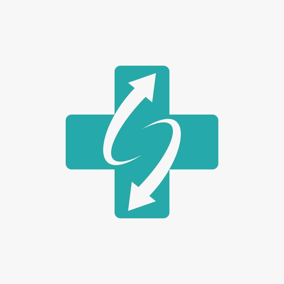 Simple and unique red cross or plus with flip 2 arrow like letter S font image graphic icon logo design abstract concept vector stock. Can be used as symbol related to medical or initial Pro Vector