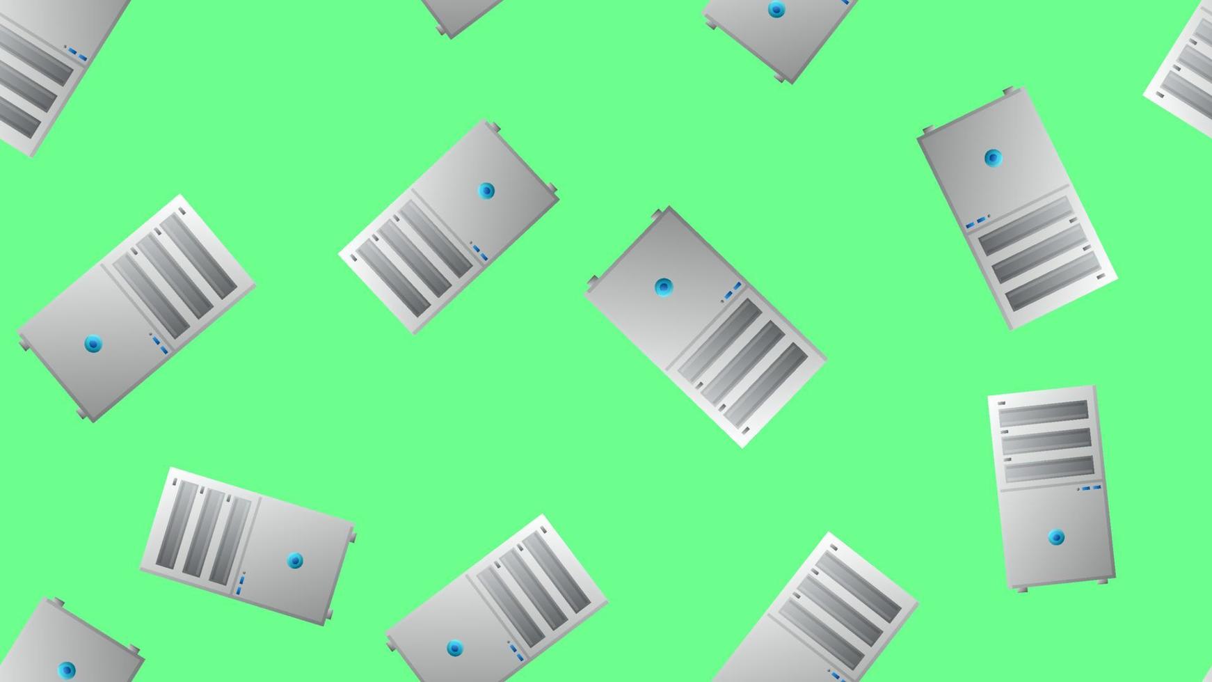 Endless seamless pattern of beautiful digital virtual modern new IT system blocks of computers on a green background. Vector illustration Pro Vector