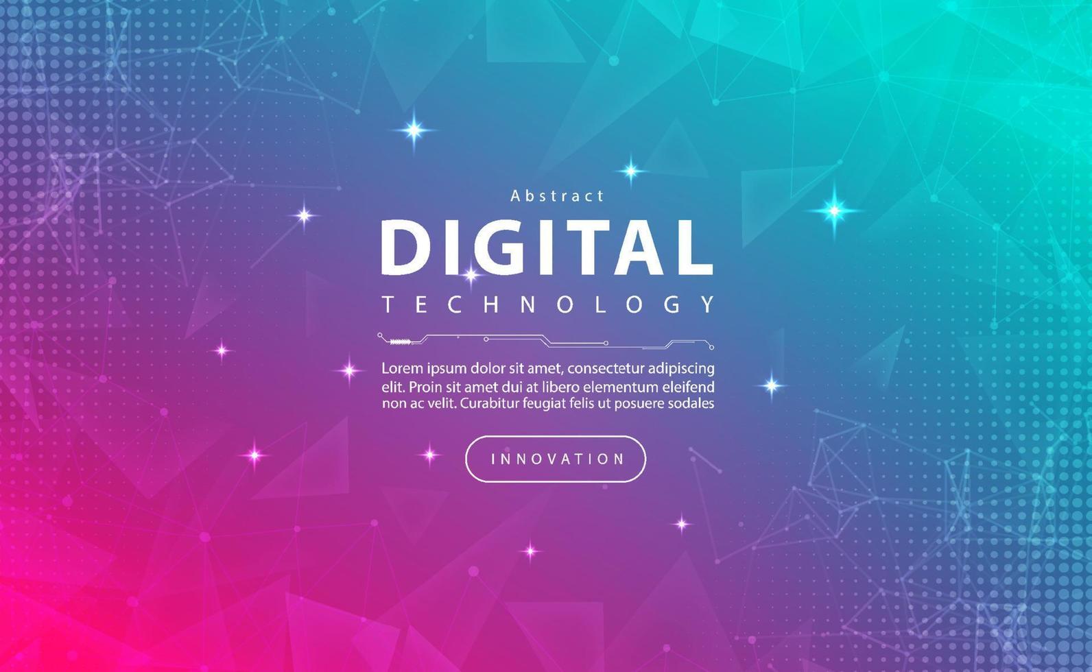 Digital technology banner green pink background, cyber technology light purple effect, abstract tech, innovation future data, internet network, Ai big data, lines dots connection, illustration vector Pro Vector
