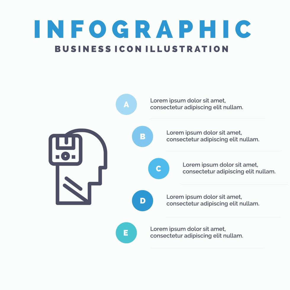 Memory Save Data User Male Line icon with 5 steps presentation infographics Background Free Vector