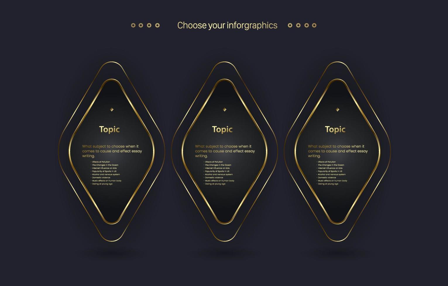SET of three dark golden banner, buttons, Groups of premium dark buttons templates design, used in wlrkflow, and option vector, illustration Pro Vector