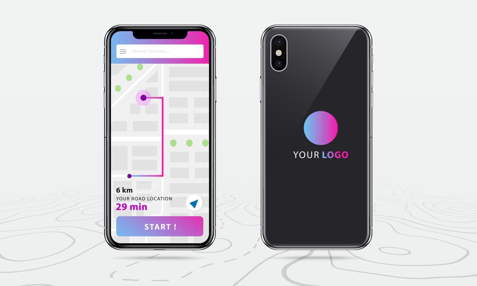 Map GPS navigation app ux ui concept, Mobile map application, Smartphone App search map navigation, Technology map, City navigation maps, City street, gps tracking, Location tracker, Vector Free Vector