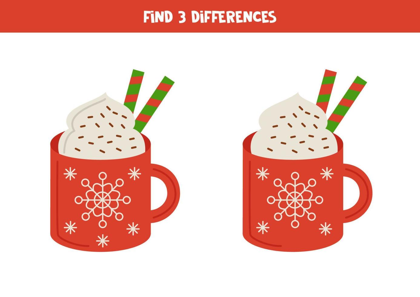 Find 3 differences between two red cups of cacao. Pro Vector