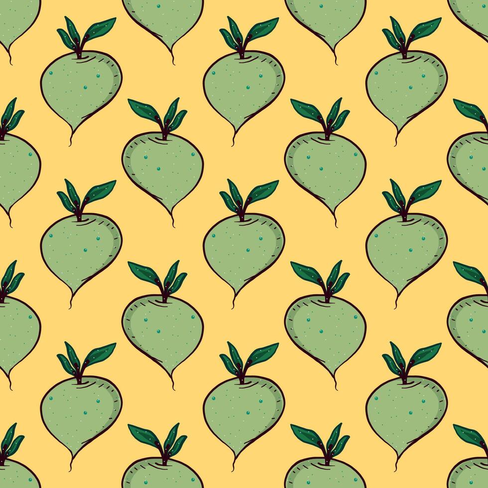 Radish pattern, seamless pattern on yellow background. Pro Vector
