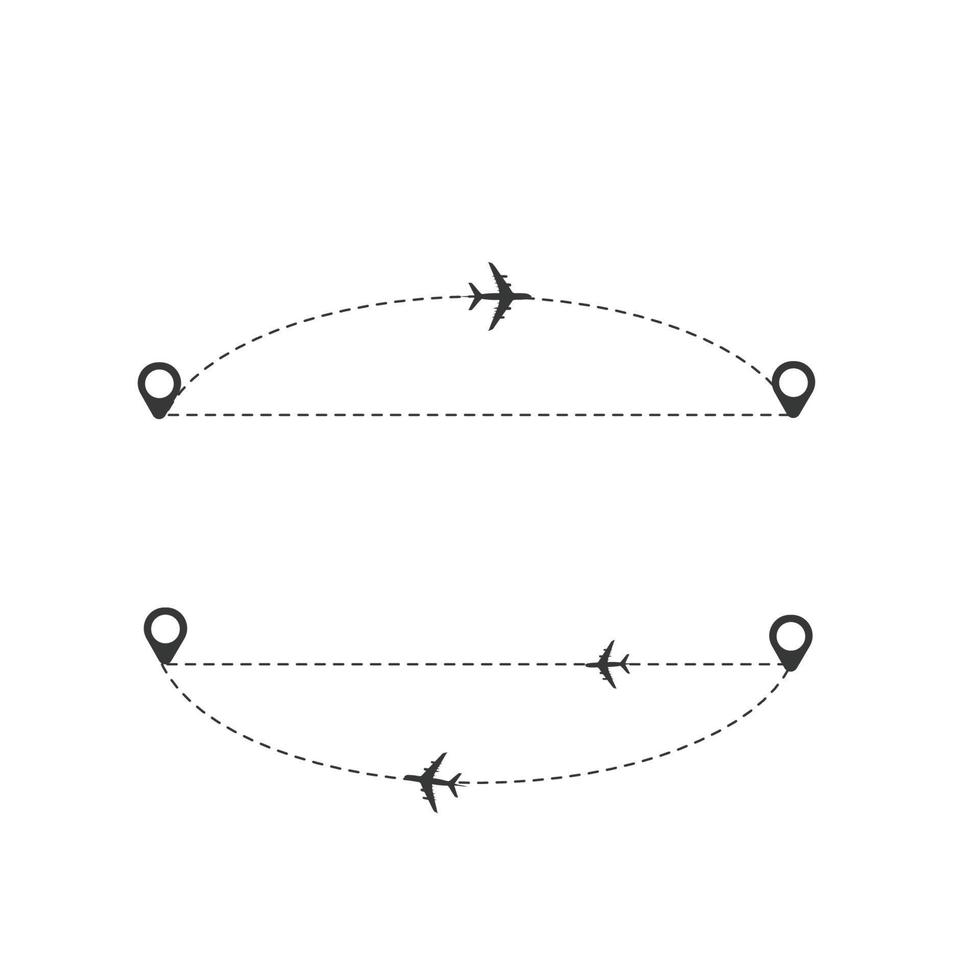 Set of dashed line airplane route with location icon flat design Pro Vector