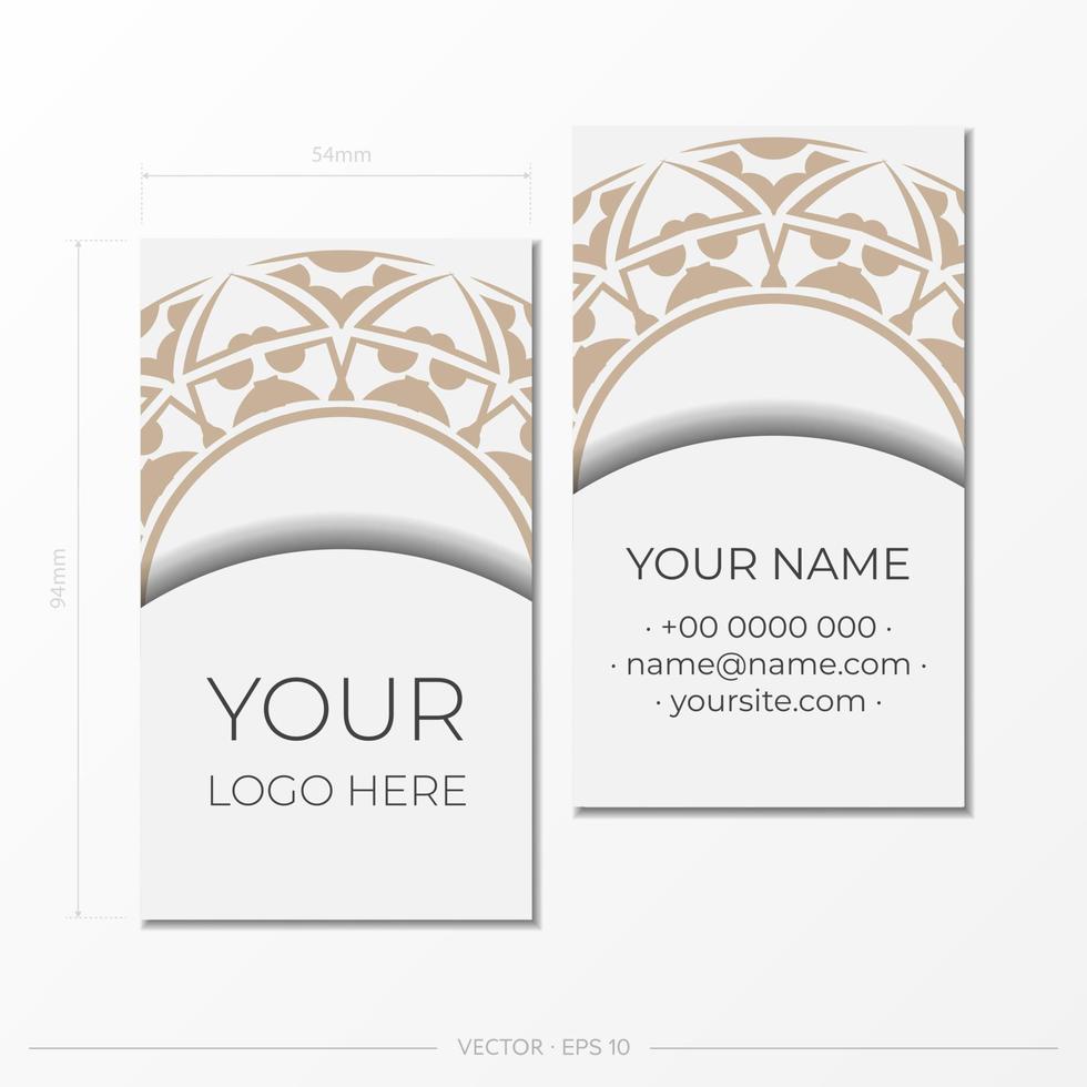A set of white business cards with an ornament. Print-ready business card design with space for your text and abstract patterns. Pro Vector