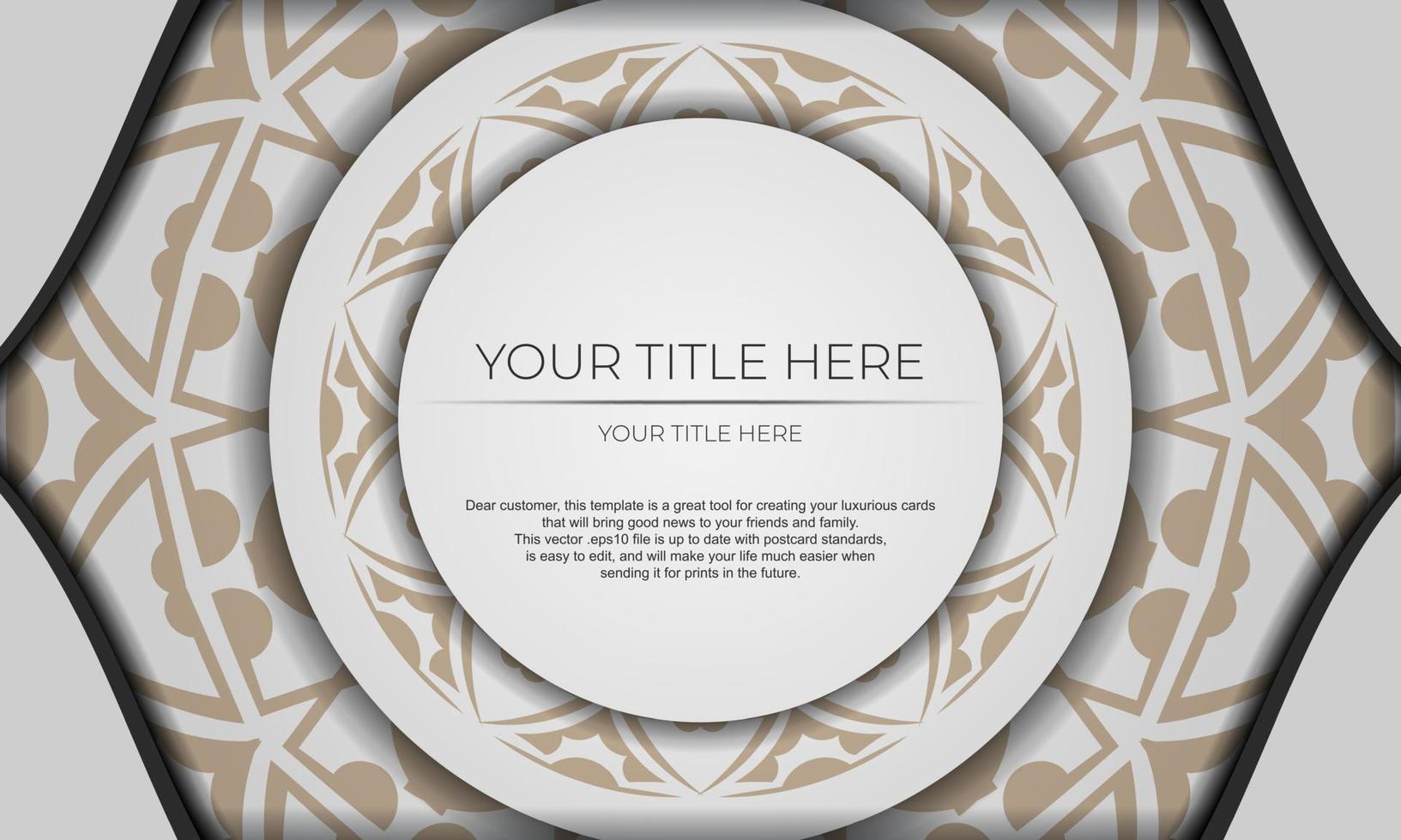 Template for postcard print design with Greek patterns. White vector banner with ornaments and place for your text and logo. Pro Vector