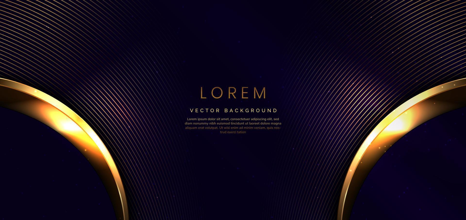 Abstact 3d luxury black curve with border golden curve lines elegant and lighting effect on black background. vector