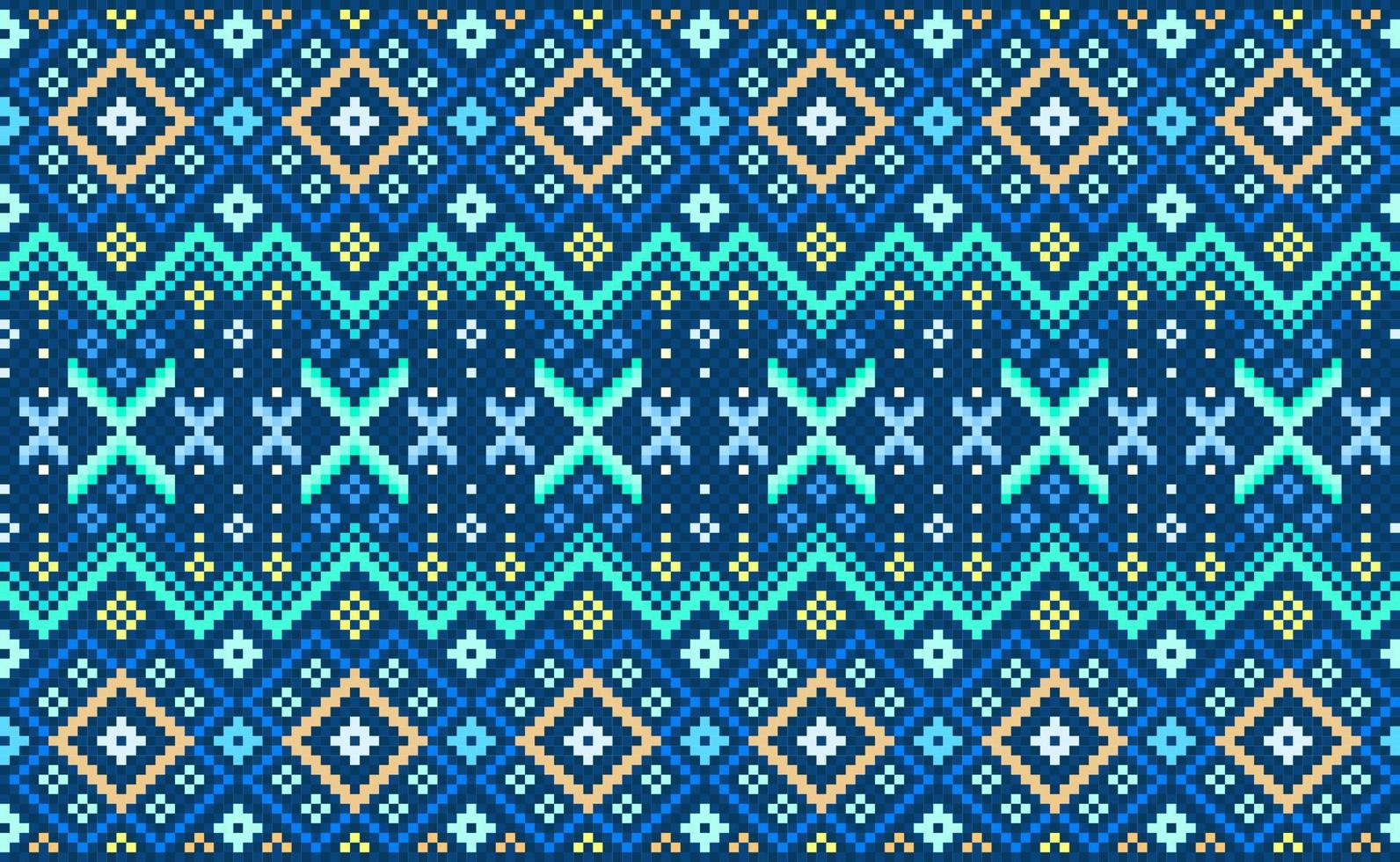 Pixel ethnic pattern, Vector Geometric decorative geometry style, Blue and green pattern Boho background Pro Vector