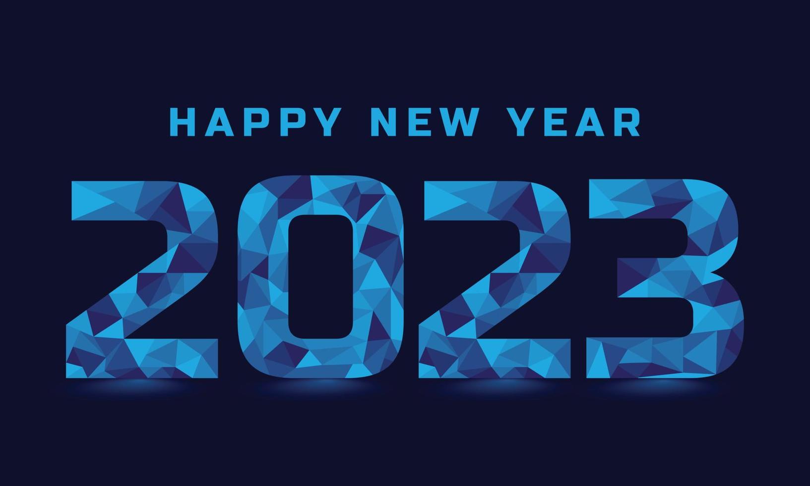 Happy new year 2023 low polygon blue gradient text. Happy new year 2023 social media banner header text Pro Vector
