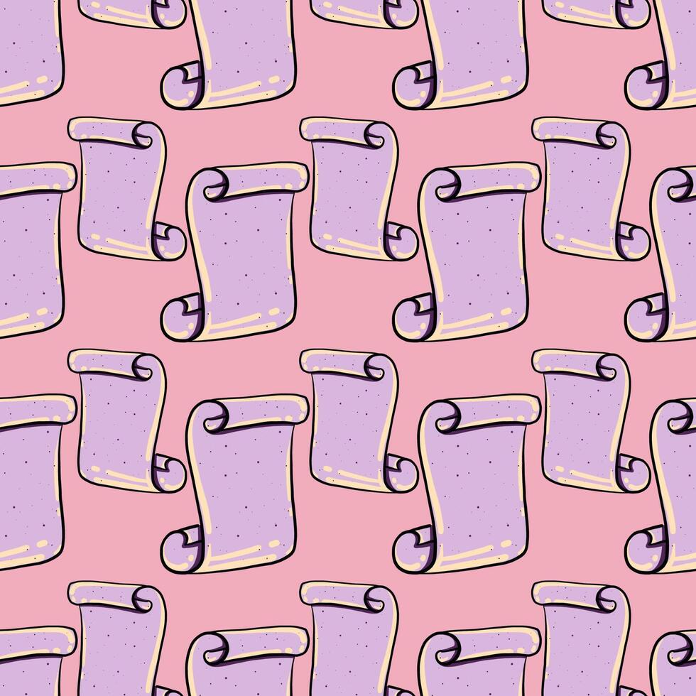 Paper scroll, seamless pattern on pink background. Pro Vector