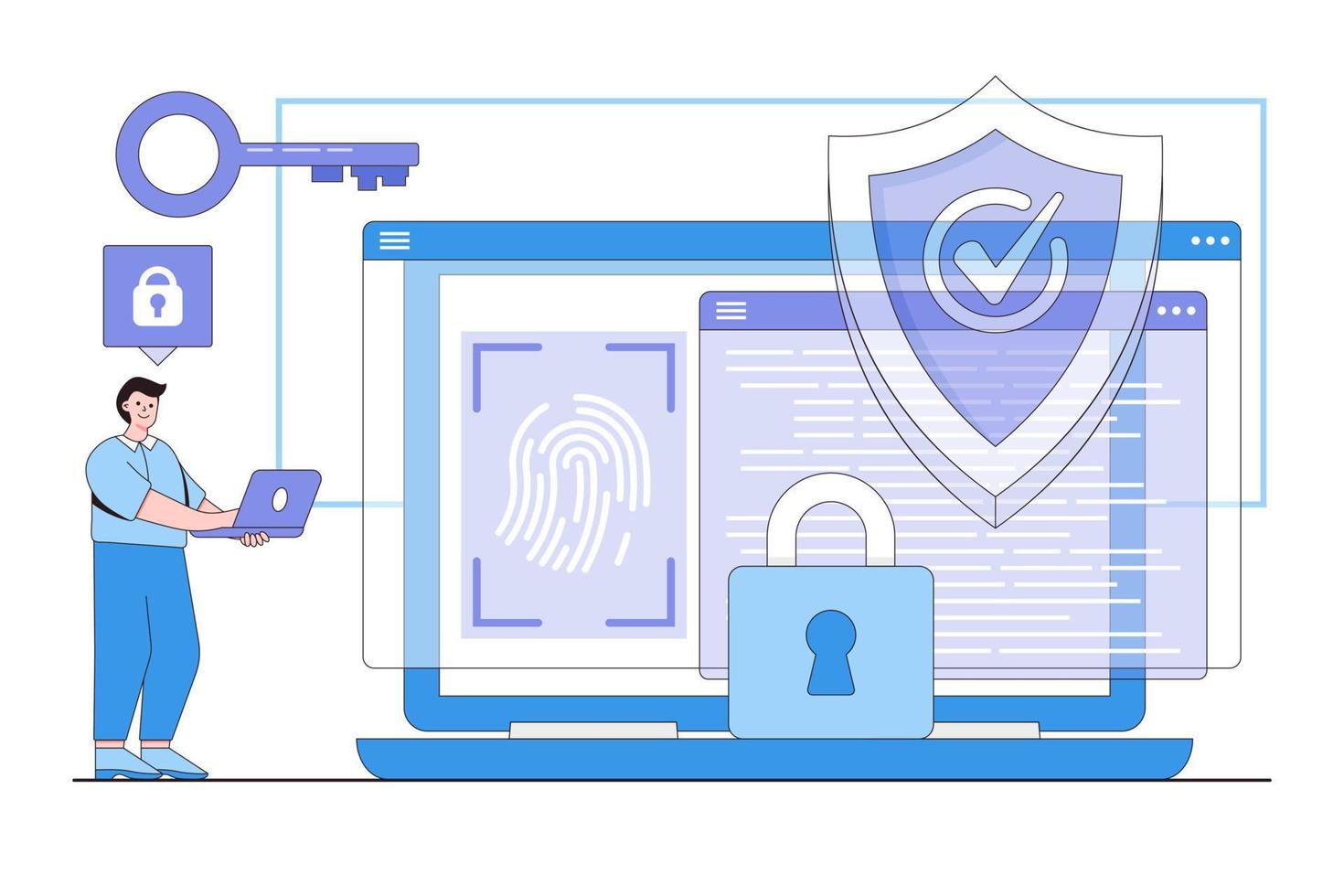 Flat data security concept with people characters. Can use for landing page, web banner, infographics, hero images Pro Vector