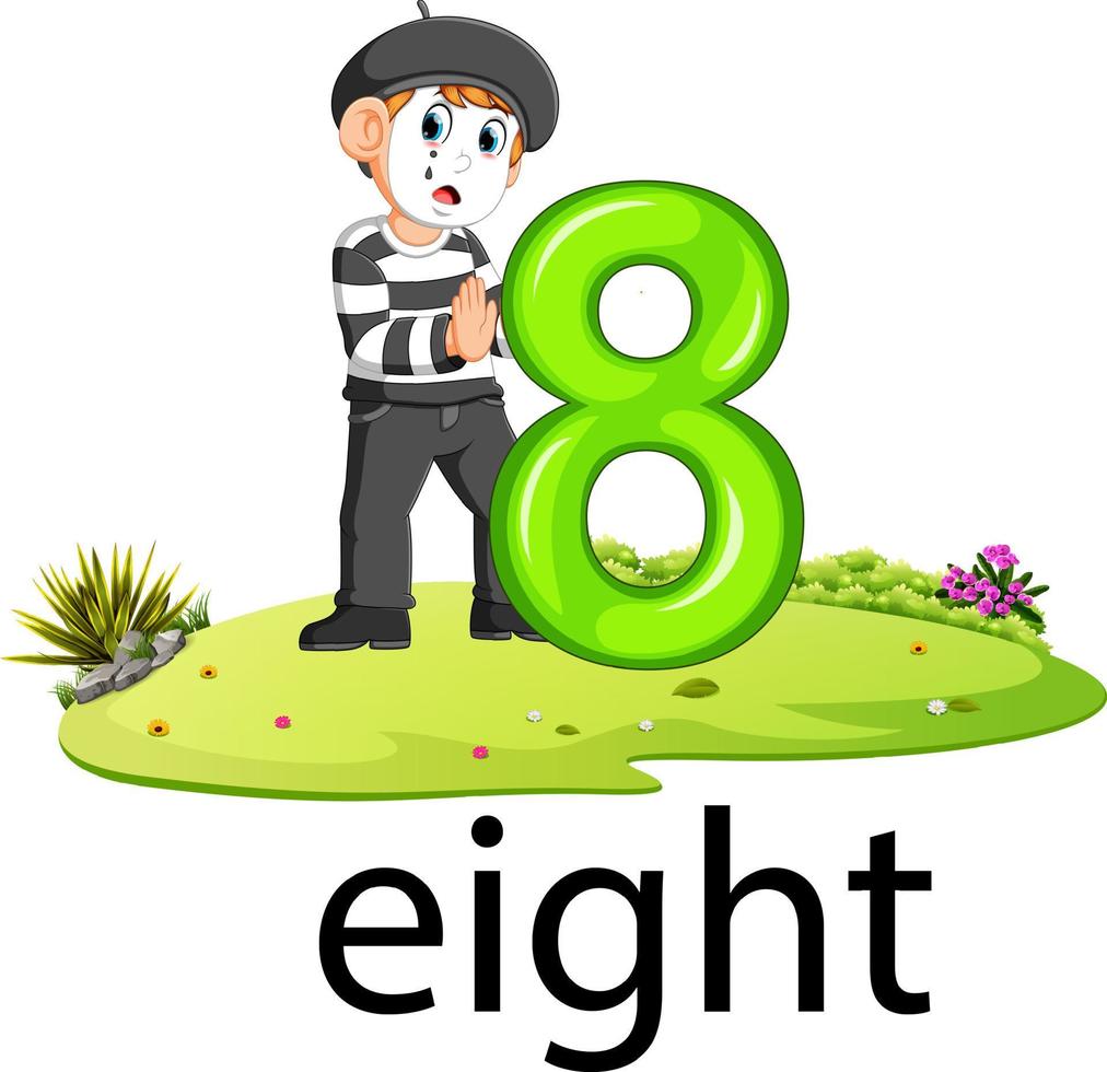 little pantomime boy act with the 8 balloon number and text with different posing Pro Vector