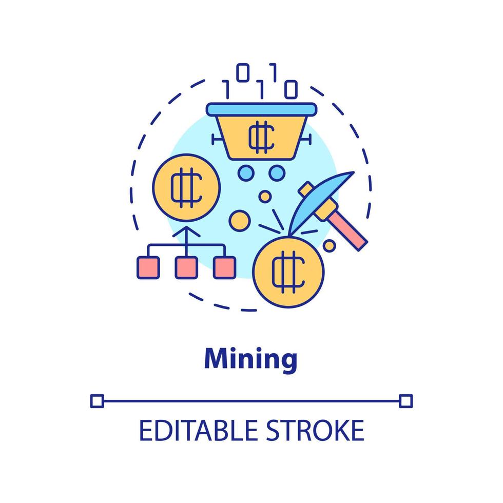 Mining concept icon. Blockchain technology. Way to make money on crypto abstract idea thin line illustration. Isolated outline drawing. Editable stroke. Pro Vector
