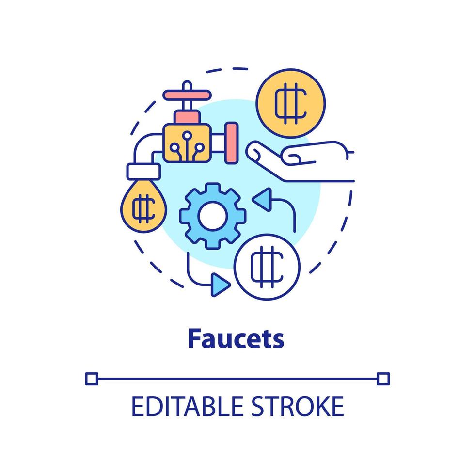 Faucets concept icon. Free tokens by completing tasks. Make money on crypto abstract idea thin line illustration. Isolated outline drawing. Editable stroke. Pro Vector