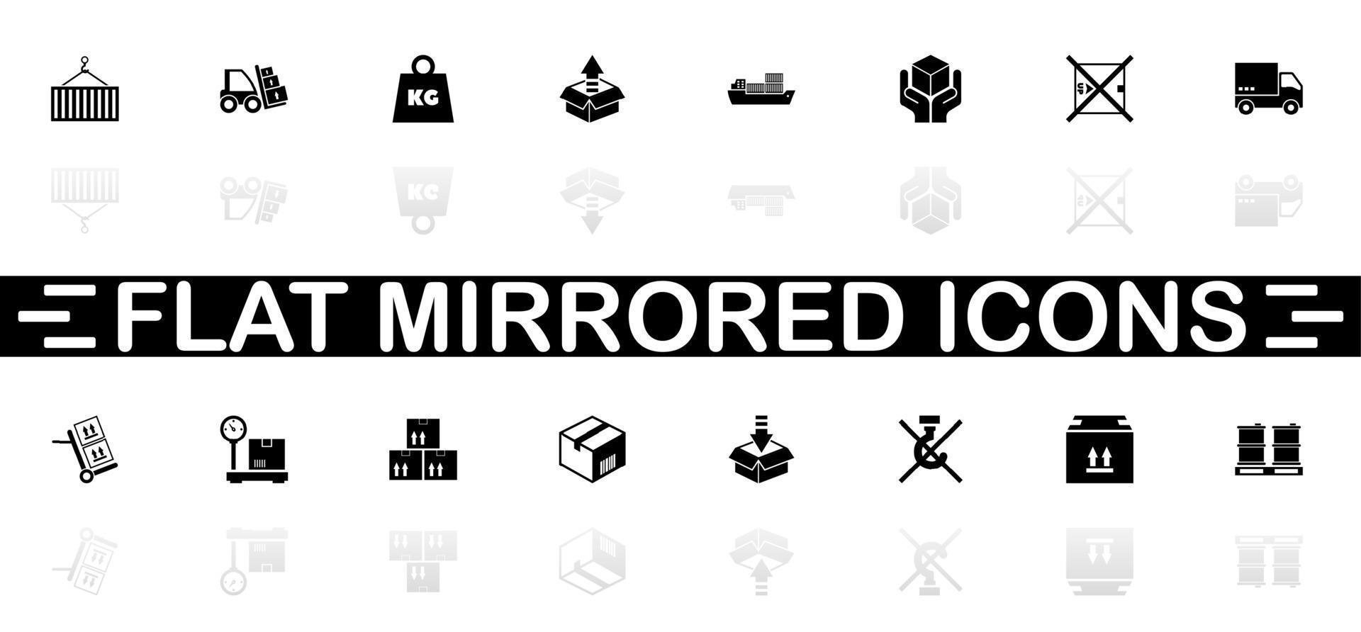 Cargo icons - Black symbol on white background. Simple illustration. Flat Vector Icon. Mirror Reflection Shadow. Can be used in logo, web, mobile and UI UX project. Pro Vector