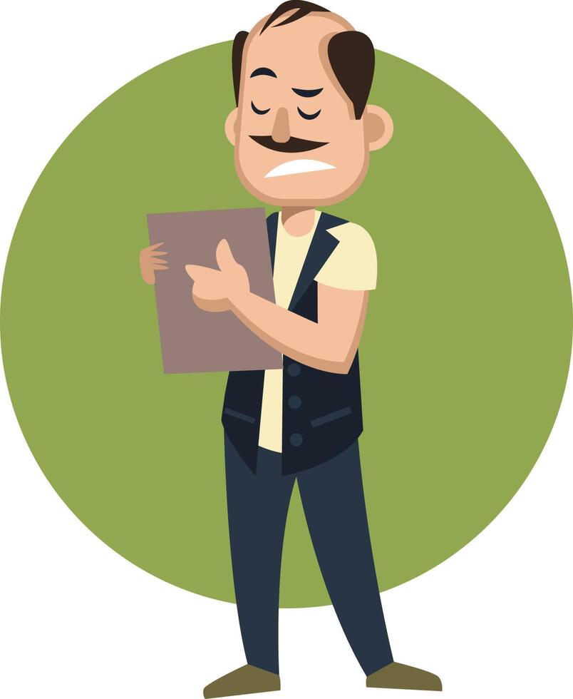 Man with notepad, illustration, vector on white background. Pro Vector
