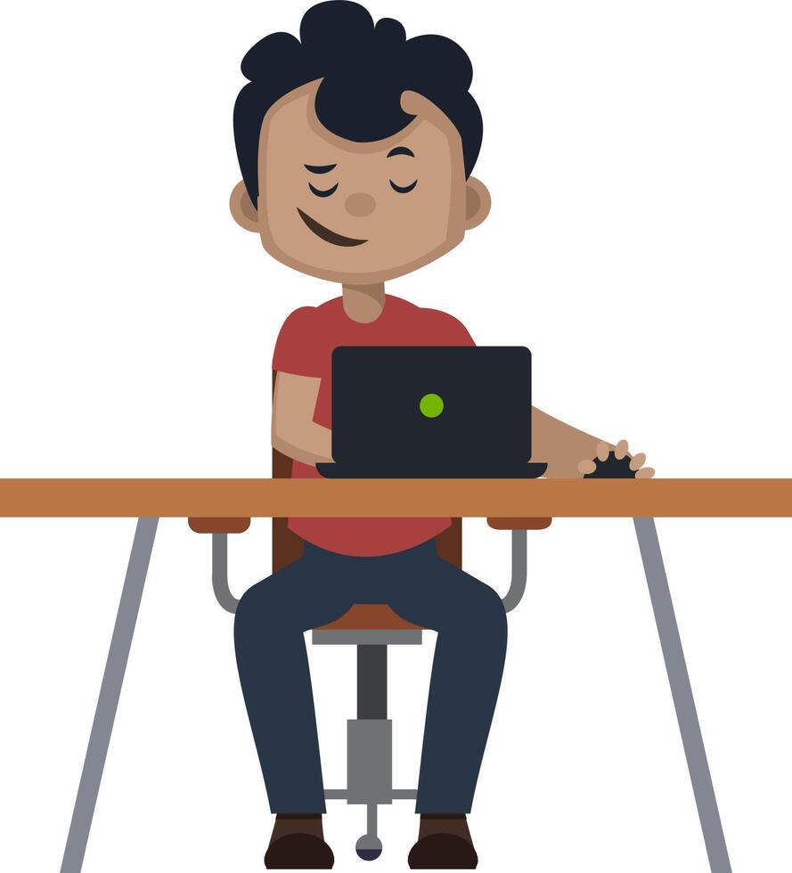 Boy is working on lap top, illustration, vector on white background. Pro Vector