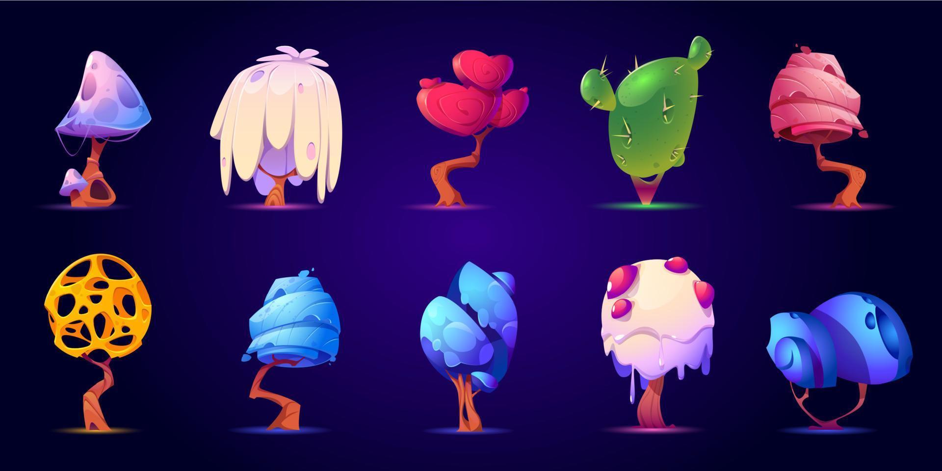 Fantasy trees and mushrooms for ui game design vector