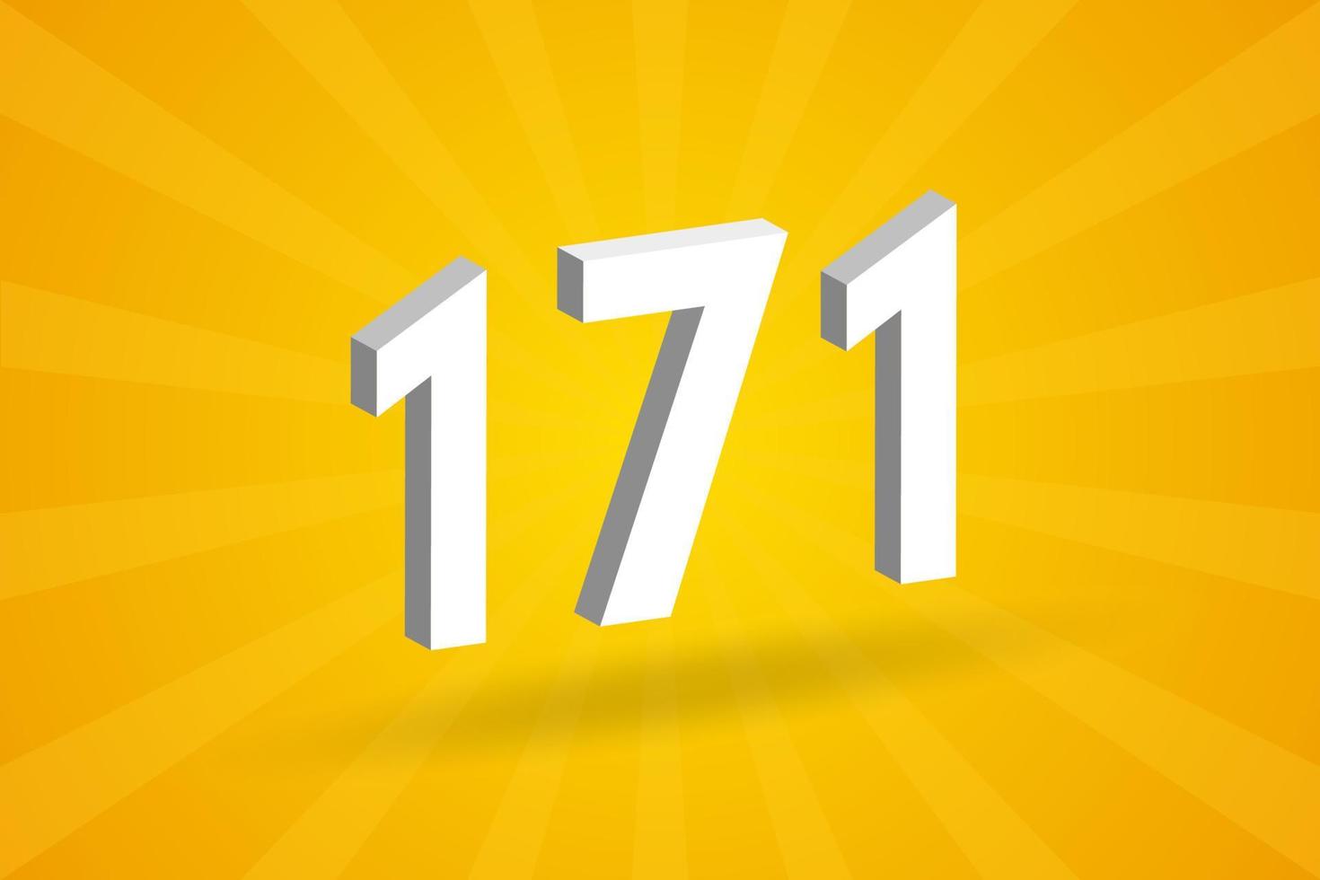 3D 171 number font alphabet. White 3D Number 171 with yellow background vector