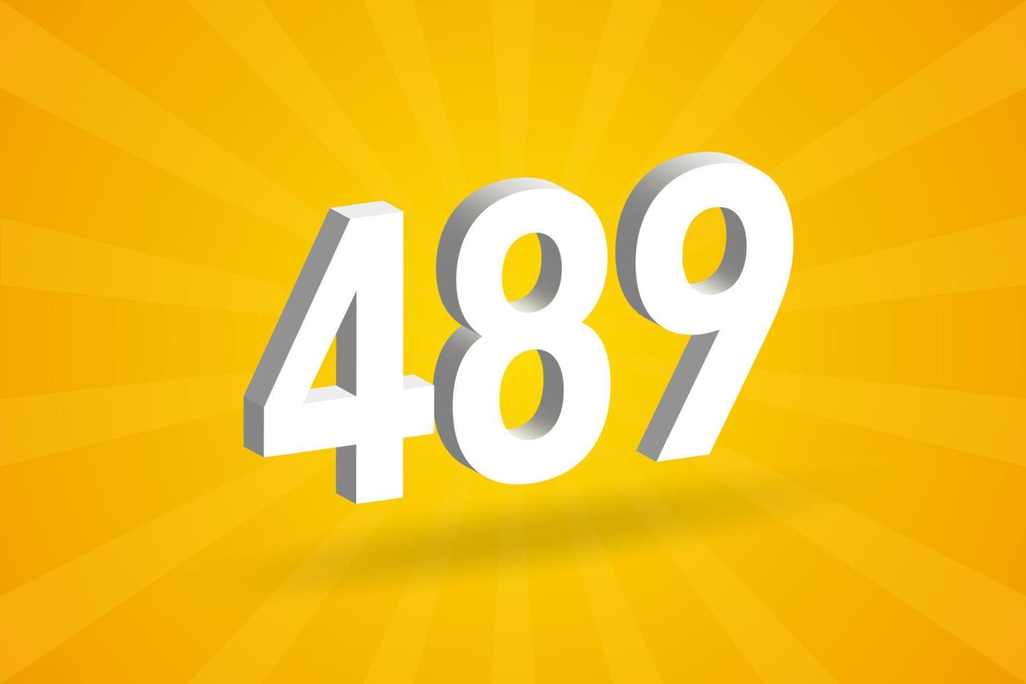 3D 489 number font alphabet. White 3D Number 489 with yellow background vector