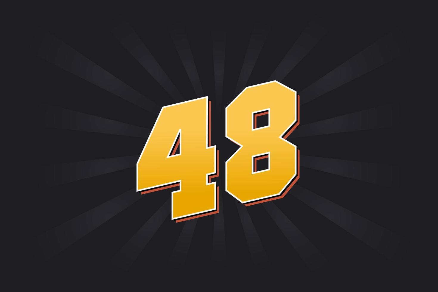 Number 48 vector font alphabet. Yellow 48 number with black background