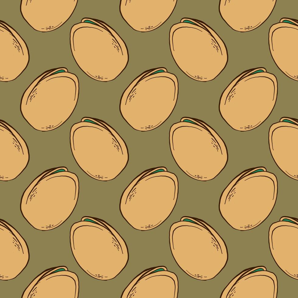Pistachio in a shell, seamless pattern on oker background. Pro Vector