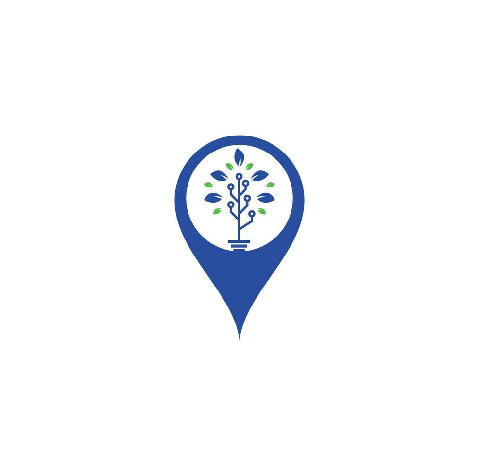 Tech Tree map pin shape concept Logo Template Design. Pro Vector