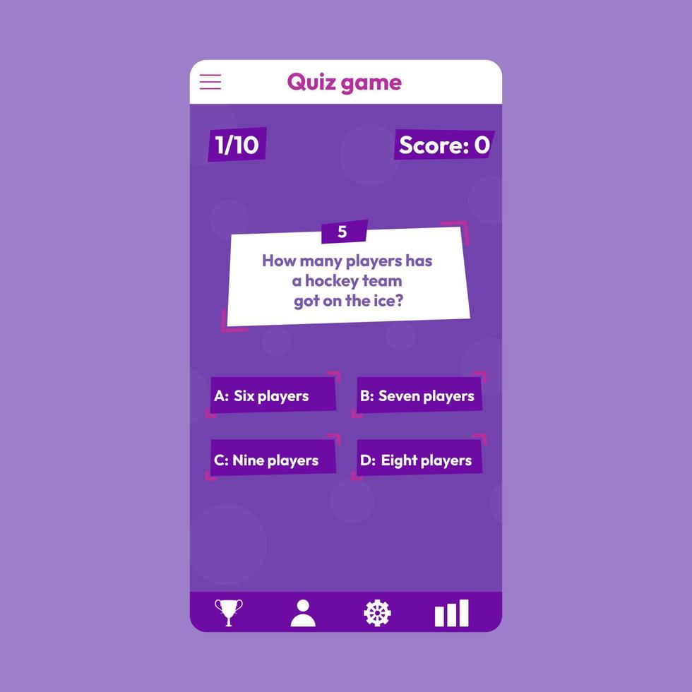 Quiz test lottery millionaire menu template. Quiz game frame. Window with questions. Flat vector illustration Pro Vector