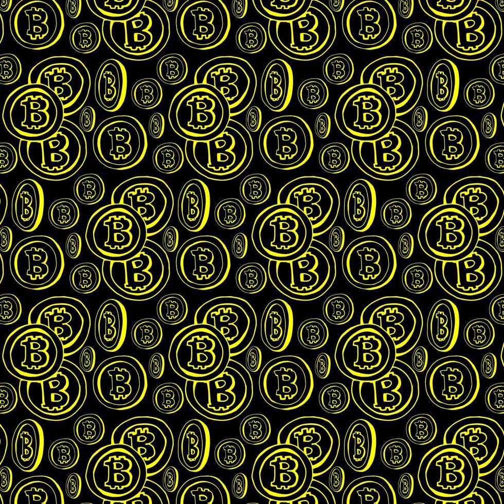 Abstract geometric pattern with bitcoin. A background. Black and gold ornament. Graphic modern pattern. Simple lattice graphic design. - illustration Pro Vector