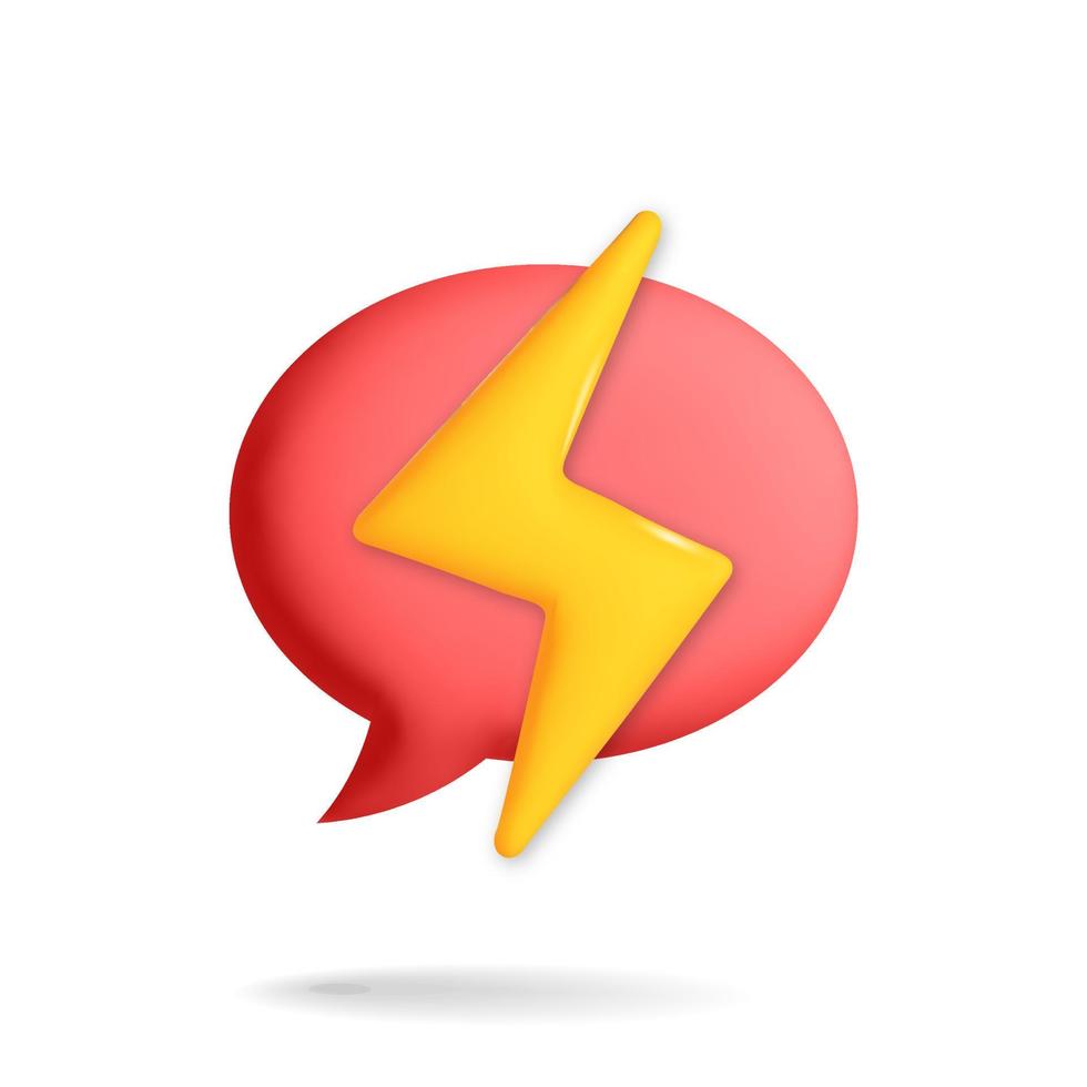 3d vector realistic render notification push red bubble with yellow thunder flash bolt symbol banner design Pro Vector