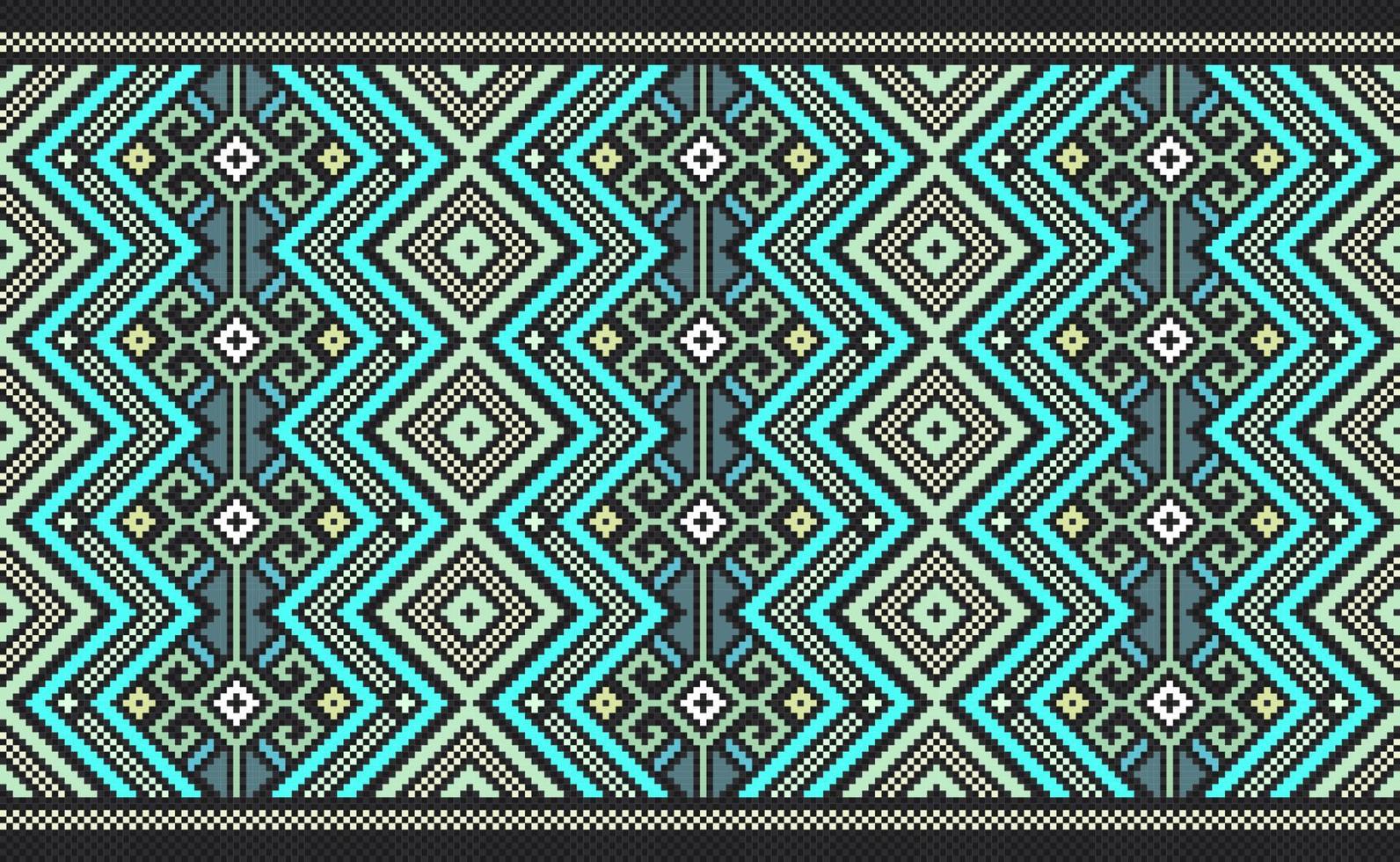 Geometric ethnic pattern, Vector embroidery abstract background, Pixel classic aztec style, Green pattern beautiful horizontal, Design for textile, fabric, backdrop, digital print, graphic Pro Vector