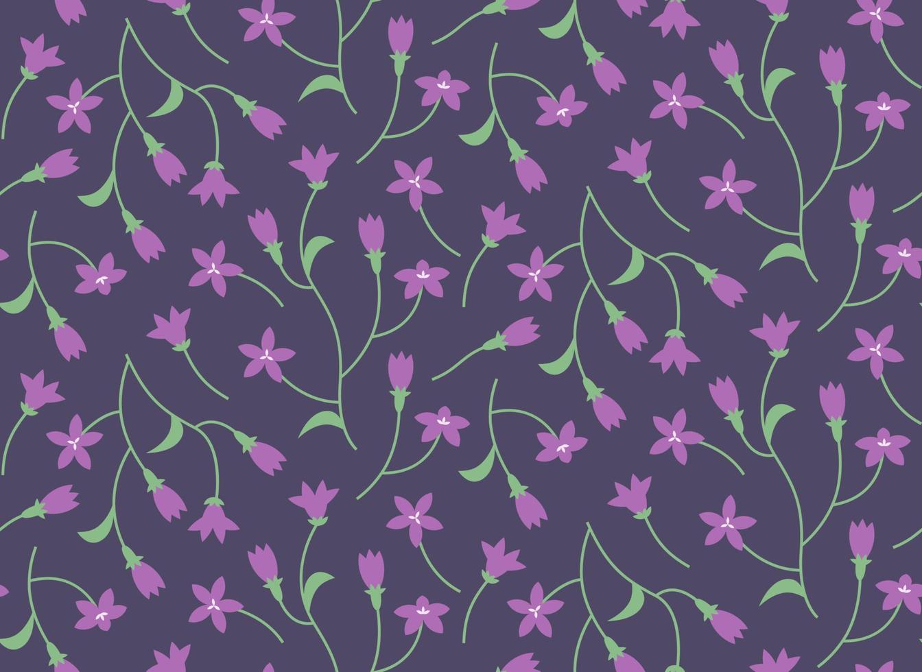 Seamless pattern with campanula. Beautiful nature texture in flat style. Pro Vector