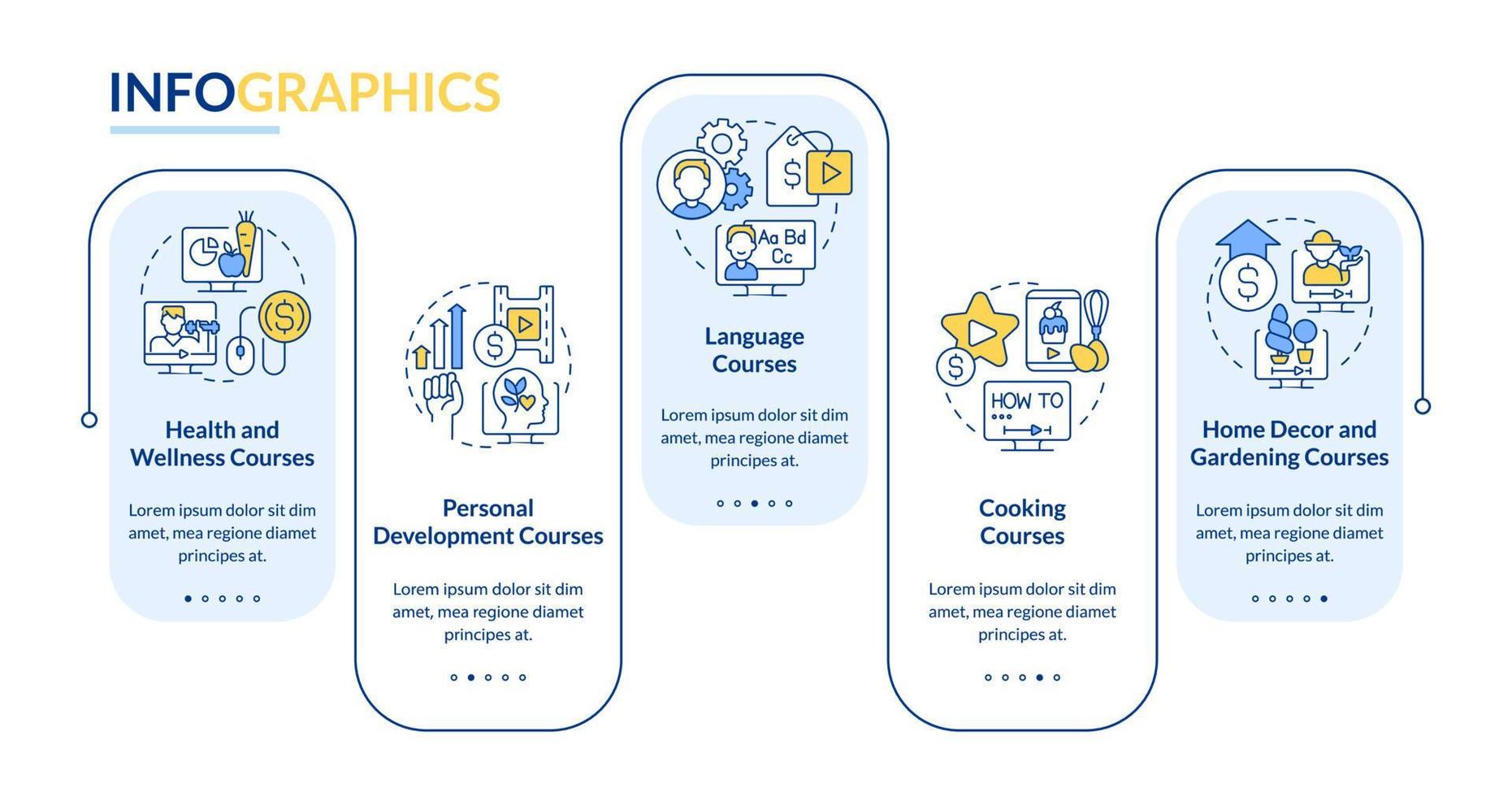 Online tutorials ideas rectangle infographic template. Data visualization with 5 steps. Editable timeline info chart. Workflow layout with line icons. Pro Vector