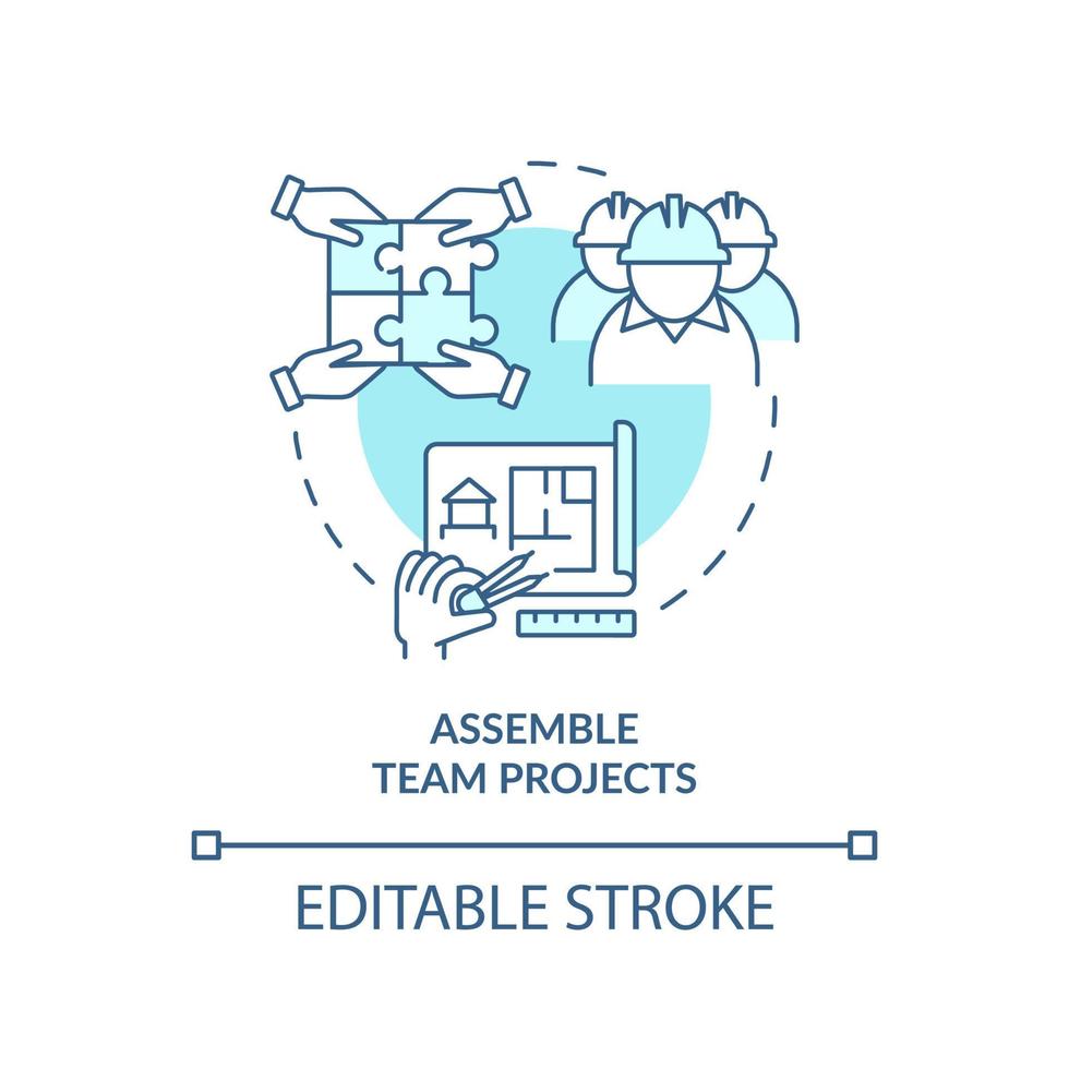 Assemble team projects turquoise concept icon. Tip for housing development abstract idea thin line illustration. Isolated outline drawing. Editable stroke. Pro Vector
