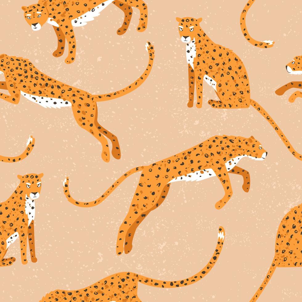 Seamless pattern with leopards on a plain background with a slight texture Pro Vector