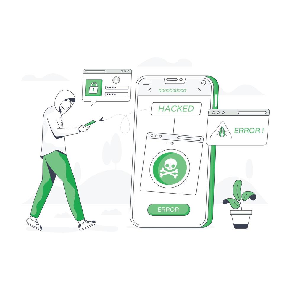 Visually appealing flat illustration of mobile hacking Pro Vector