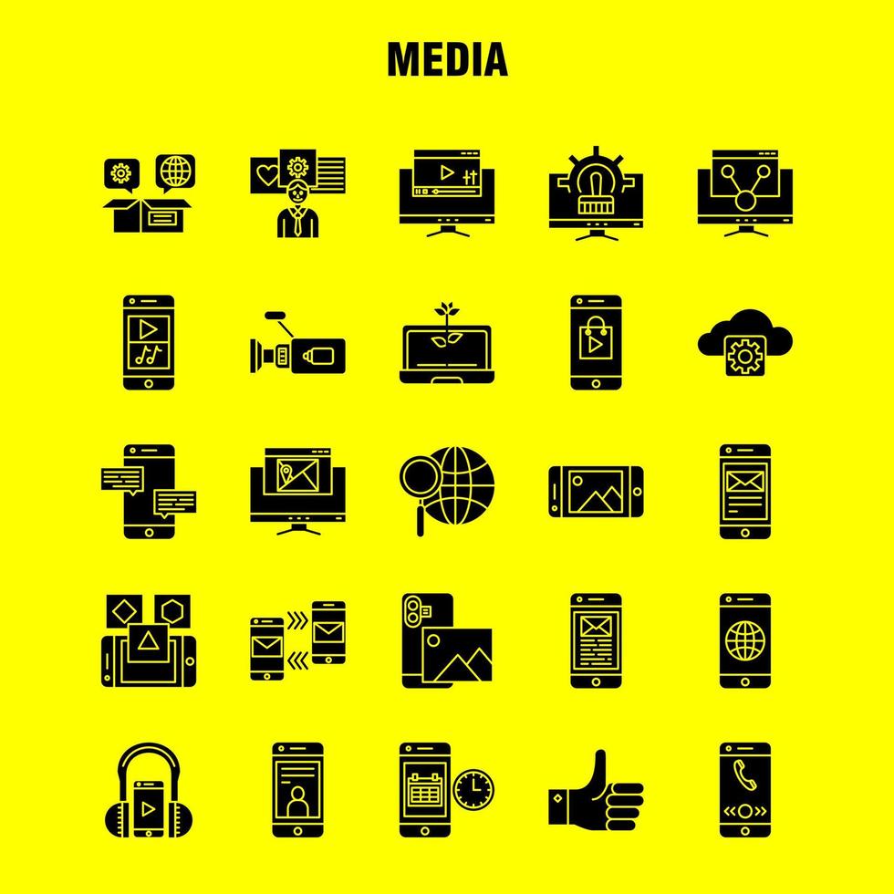 Media Solid Glyph Icon for Web Print and Mobile UXUI Kit Such as Mobile Cell World Internet Mobile Cell Phone Mail Pictogram Pack Vector Free Vector