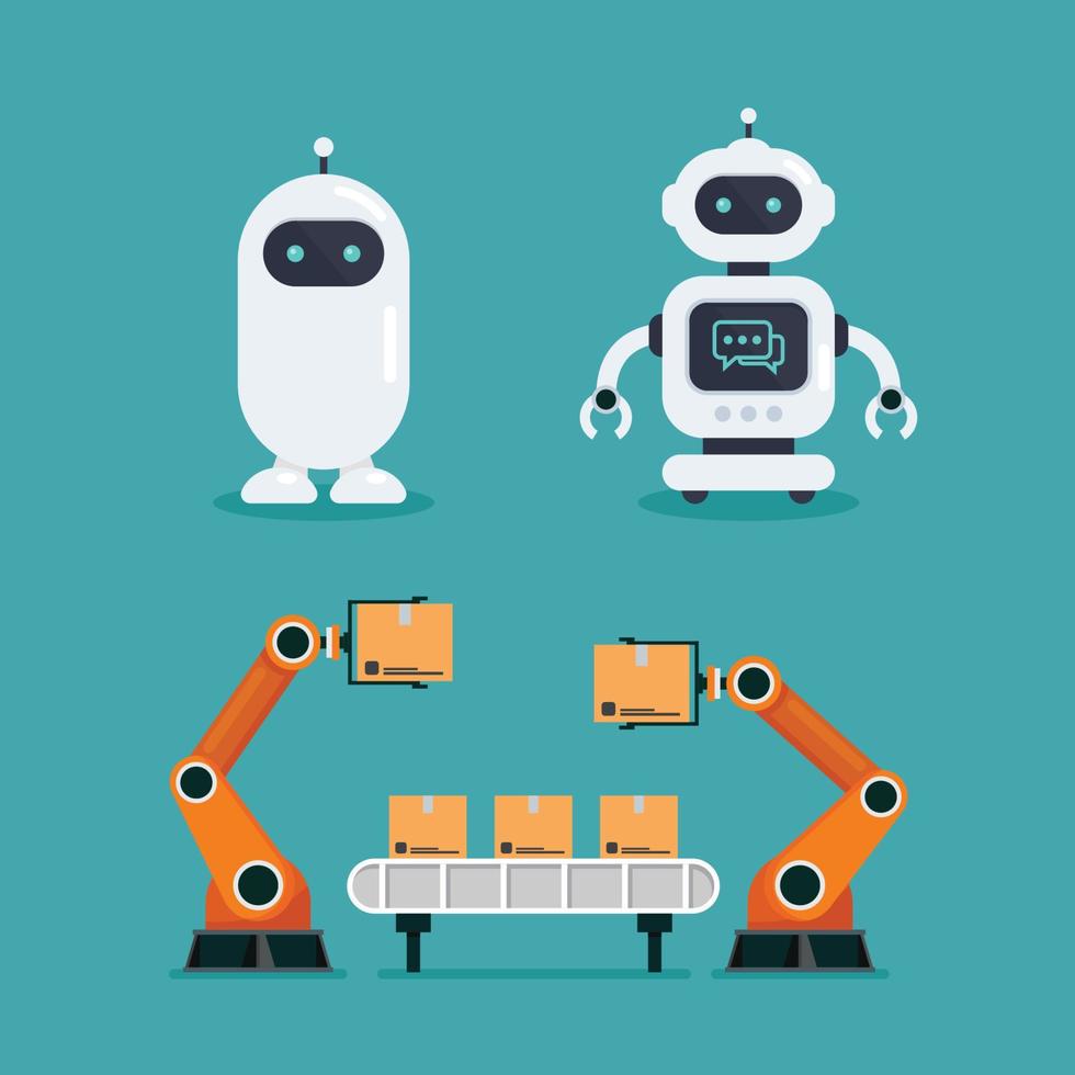Robot Chatbot and Heavy automation robot machine Pro Vector