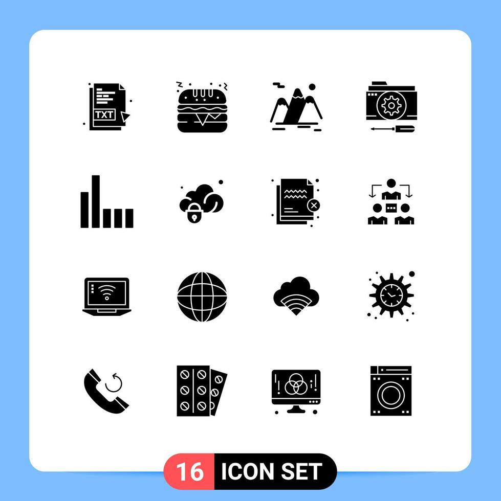 16 Universal Solid Glyph Signs Symbols of connection setting mountain options configuration Editable Vector Design Elements
