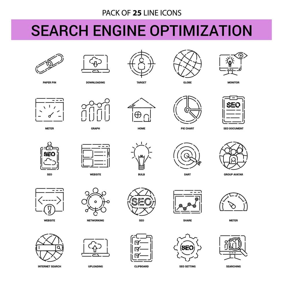 Search Engine Optimization Line Icon Set 25 Dashed Outline Style Free Vector