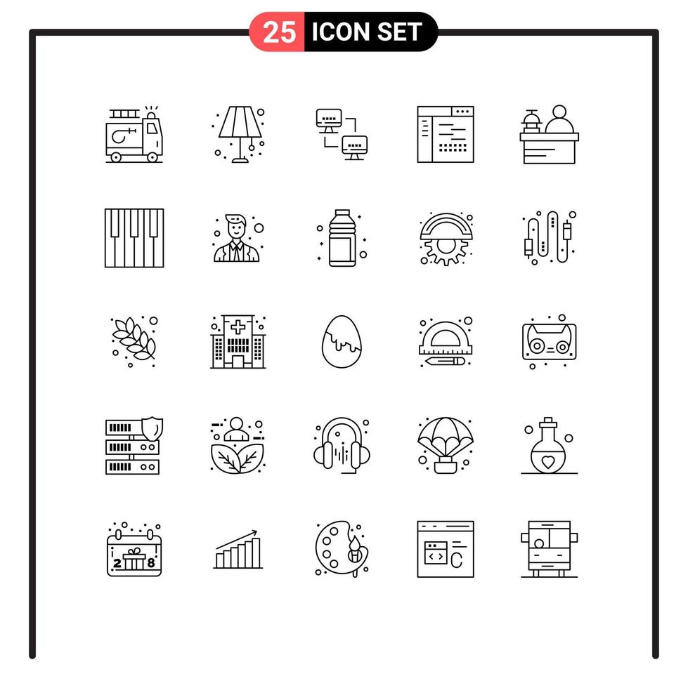 Mobile Interface Line Set of 25 Pictograms of concierge page computer development code Editable Vector Design Elements