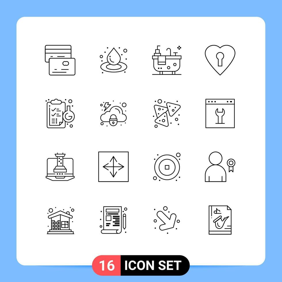 User Interface Pack of 16 Basic Outlines of lock laboratory hub flask clipboard Editable Vector Design Elements