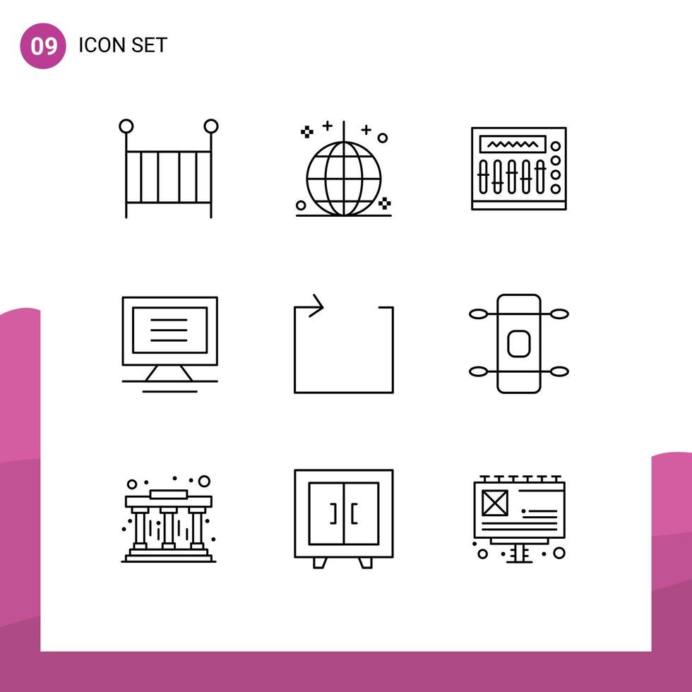 Set of 9 Vector Outlines on Grid for loop hardware party computer party Editable Vector Design Elements Free Vector