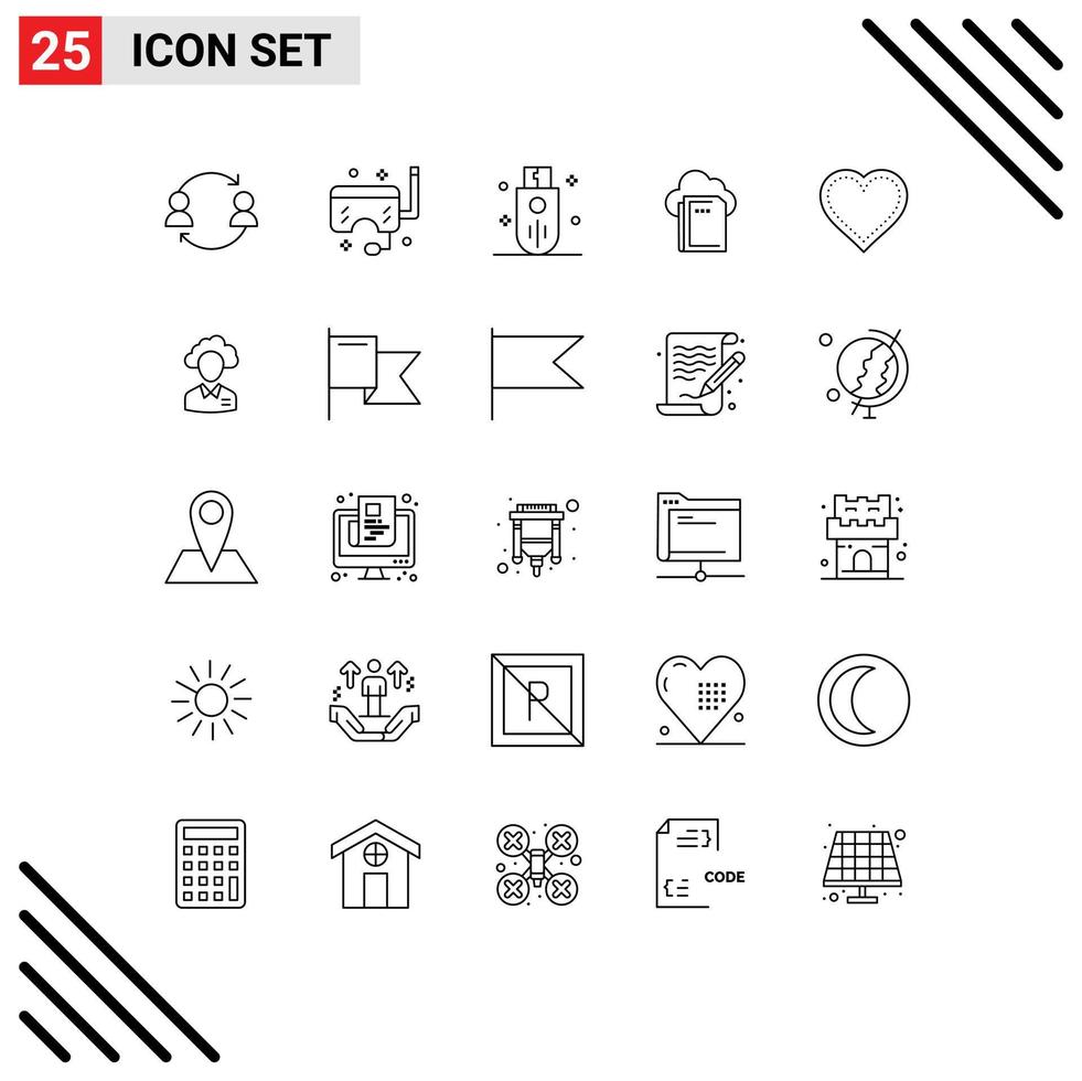 25 Universal Lines Set for Web and Mobile Applications data cloud sea storage outline Editable Vector Design Elements