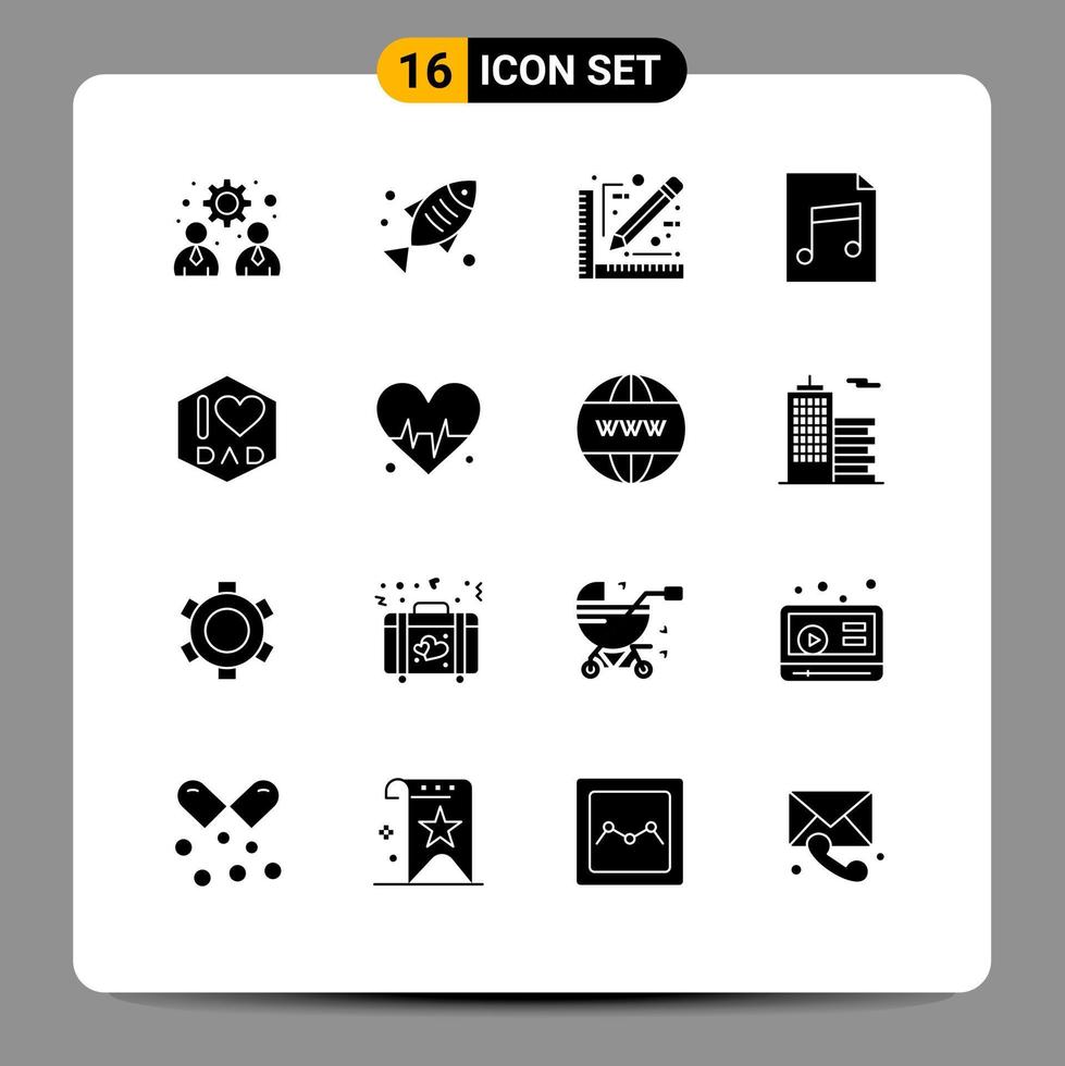 16 User Interface Solid Glyph Pack of modern Signs and Symbols of fathers day dad architect file audio Editable Vector Design Elements