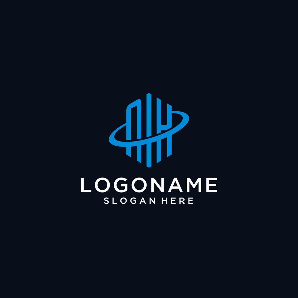 NH initial monogram logo with hexagonal shape and swoosh design Pro Vector and Pro SVG