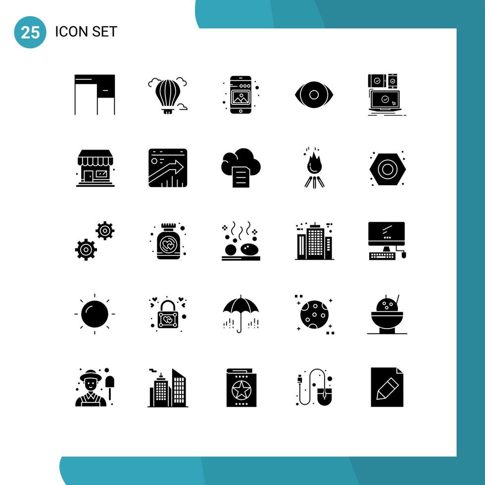 Modern Set of 25 Solid Glyphs and symbols such as computer human gallery face picture Editable Vector Design Elements Free Vector