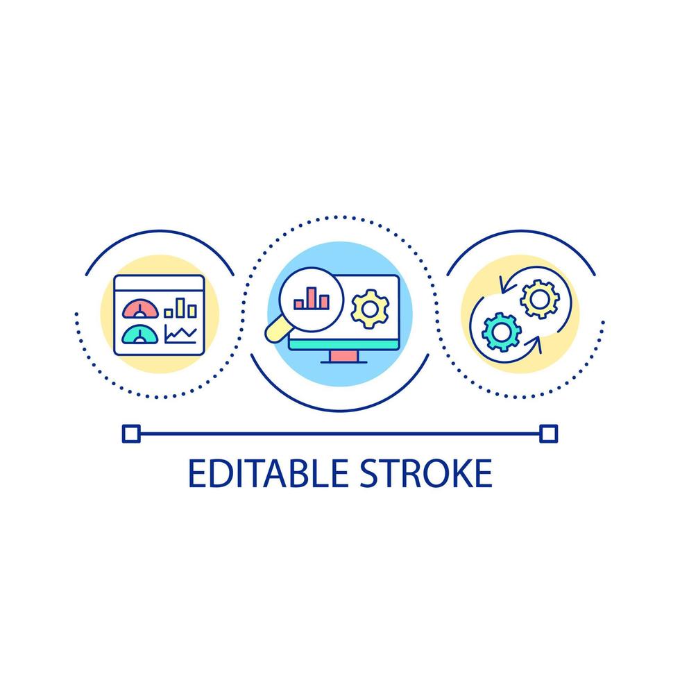 Web analytics loop concept icon. Dynamic parameters. Advanced search engine optimization abstract idea thin line illustration. Isolated outline drawing. Editable stroke. Pro Vector