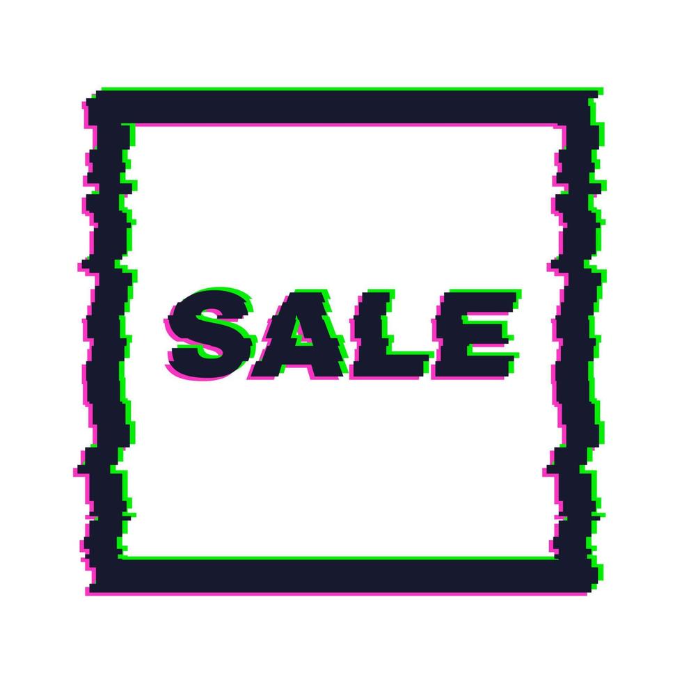 Distorted glitch sale banner with error effect on the edges and in text. Vector illustration. Pro Vector